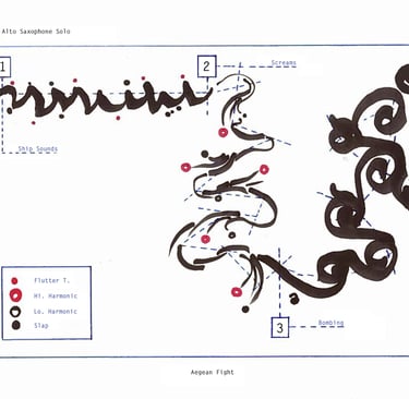 As a result of all these experiments with Adnan, he commissioned me to make a graphic score for his extensive work "Piri". You can see the notation below and listen to the track "Aegean Fight" within Adnan's album "Piri".