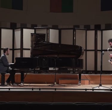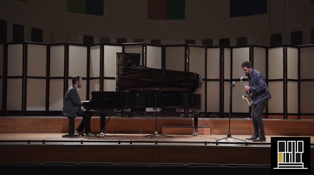 On a technical level, the composition relied on limited pitch sets, rhythmic juxtaposition, and layered textures. The challenge was to keep the piano firmly within its structural role while allowing the saxophone enough freedom to suggest unpredictability and movement. The interplay revealed how even strict architectural rules can generate expressive contrast when set against the improvisatory energy of performance.