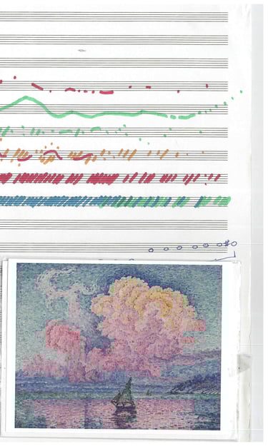 During this period I also explored other directions. I experimented with transcribing melodies in the style of Wehinger, as well as creating smaller scale scores inspired by Kandinsky’s abstract visual language. These attempts revealed both the possibilities and the limitations of visual approaches to notation. They highlighted the tension between clarity, artistic value, and interpretive freedom.