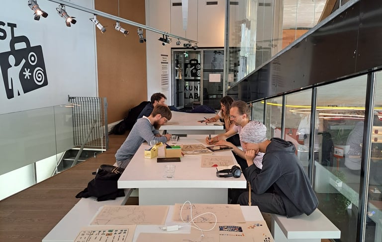 15:40 - Muziekhuis: Return to the workshop space, where participants convert their impressions into graphic scores on paper or using the Musicographics software after a short tutorial. Small snacks and coffee included (60 minutes or as long as you need).