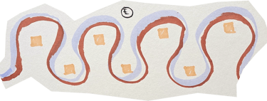 1- The observer (red): The hypothetical person moving through this timeline. Changing pace and tempo