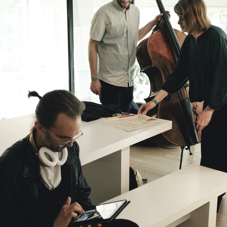We had four days in total to create music together, inspired by the haptic, acoustic, visual and design qualities of the spaces within the building. Since some of the participants couldn't be present in all the days, we worked hard at the Kunsthal LAB to produce compositions every session.