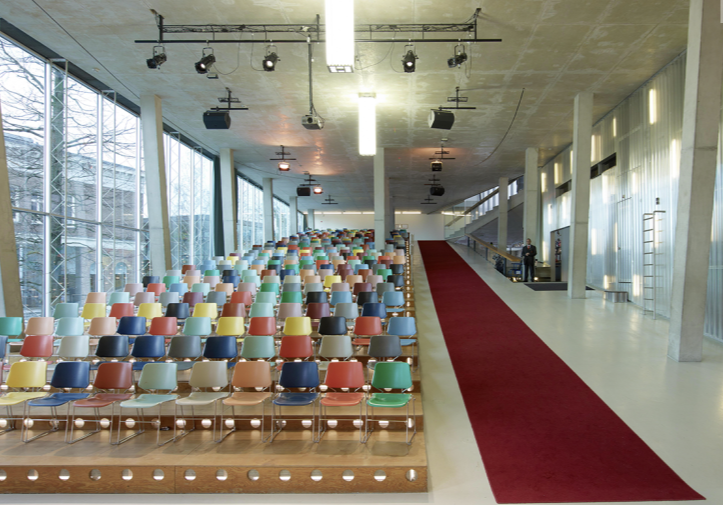 A small staircase and a connecting piece between the atrium and Hall 1. An in-between area of natural and artificial light.